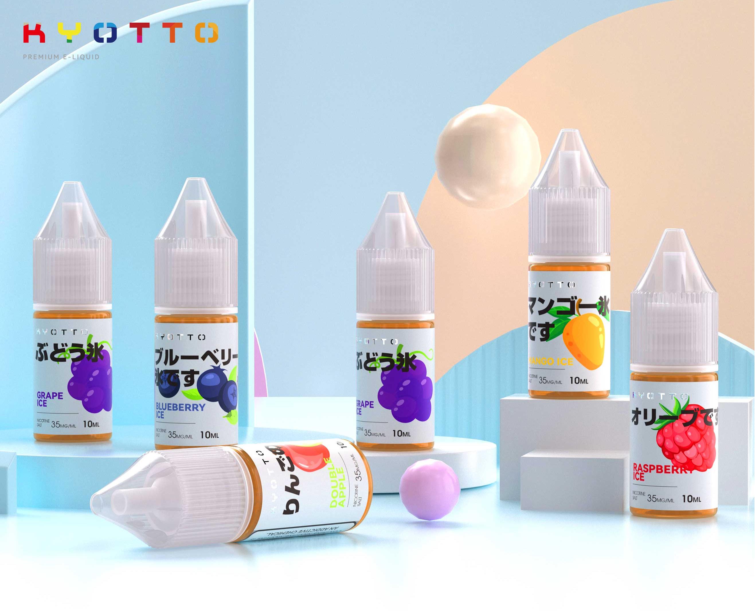 Kyotto is dedicated to delivering exceptional vaping experiences through meticulously crafted E-liquids.Developed by Japanese perfumers,our products exclusively use high-quality essences sourced from Japan,ensuring a pure,refined,and authentic taste.Kyotto offers a harmonious blend of smoothness and rich aromas,designed to elevate your vaping journey with every puff.